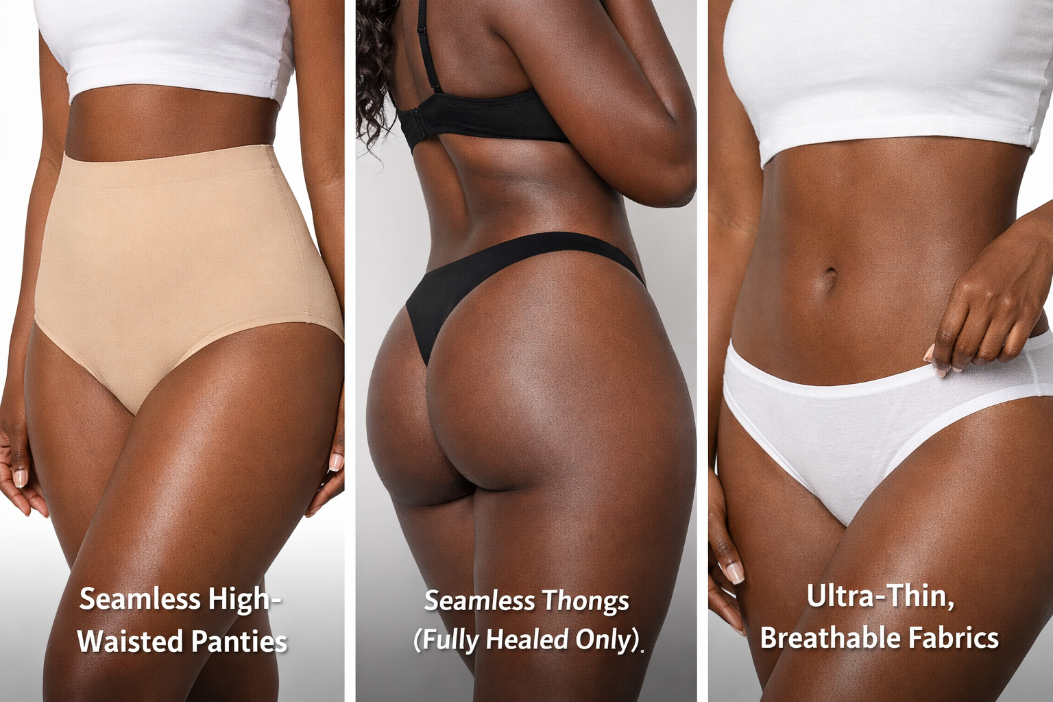✔ Seamless thongs (fully healed only)