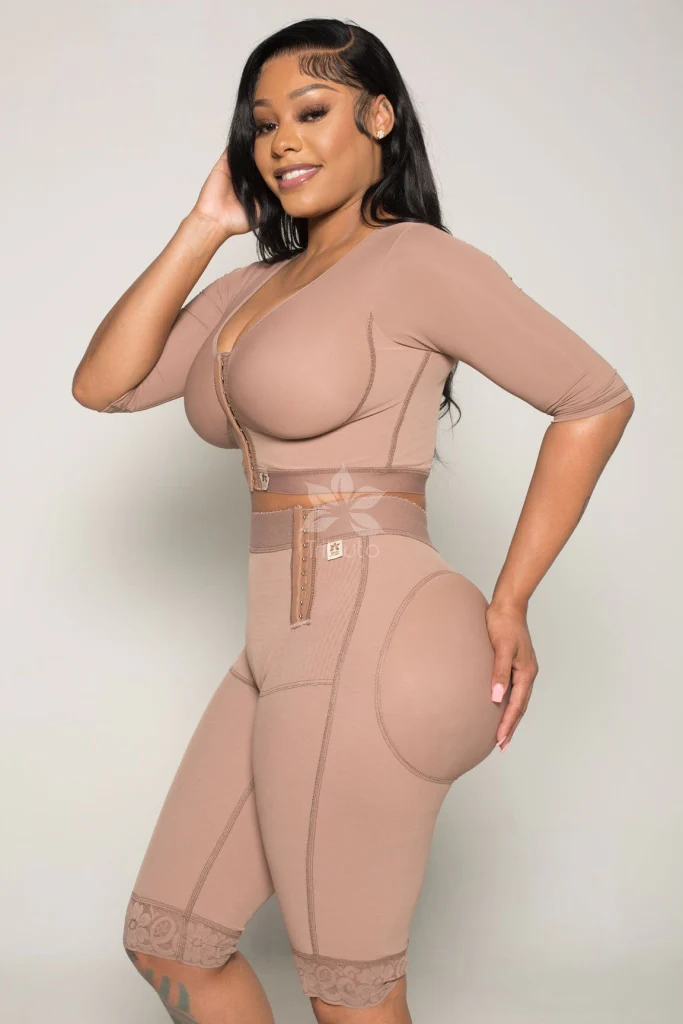 Custom-made compression shorts designed to control the lower abdomen, define the hips, and enhance the butt. Made for daily wear, they are discreet under clothing and ideal for use with dresses and shorts.