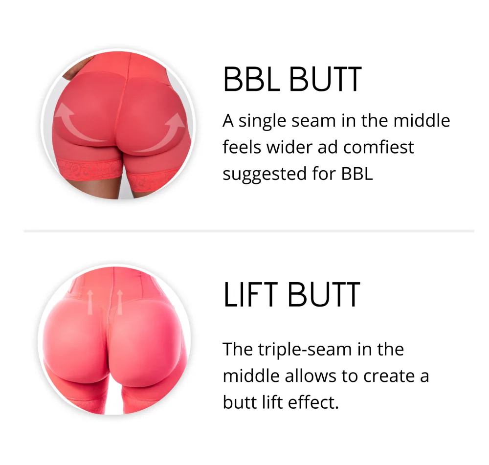 The main difference is the feeling of comfort for the BBL butt and the effect of Butt lifting for the Butt Lift. However, both butts have the same dimensions width, and length. If you still feel you need more fabric because your butt is big, you can always write on notes you want a bigger size on the butt section.