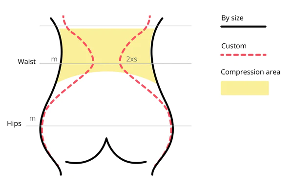 If you are used to a by-size garment, these silhouettes are not adjusted to your body. Thus, it always feels looser since it is a standard measurement. Opposite a custom-made garment that is shaped to your own measurements. It may feel tighter on your hips, but it is just because it is covering your real silhouette. But no worries, our fajas give ZERO compression to the hips and butt. The fabric we use on the butt will always stretch. You don't feel the compression, but it will provide support and shape your body.